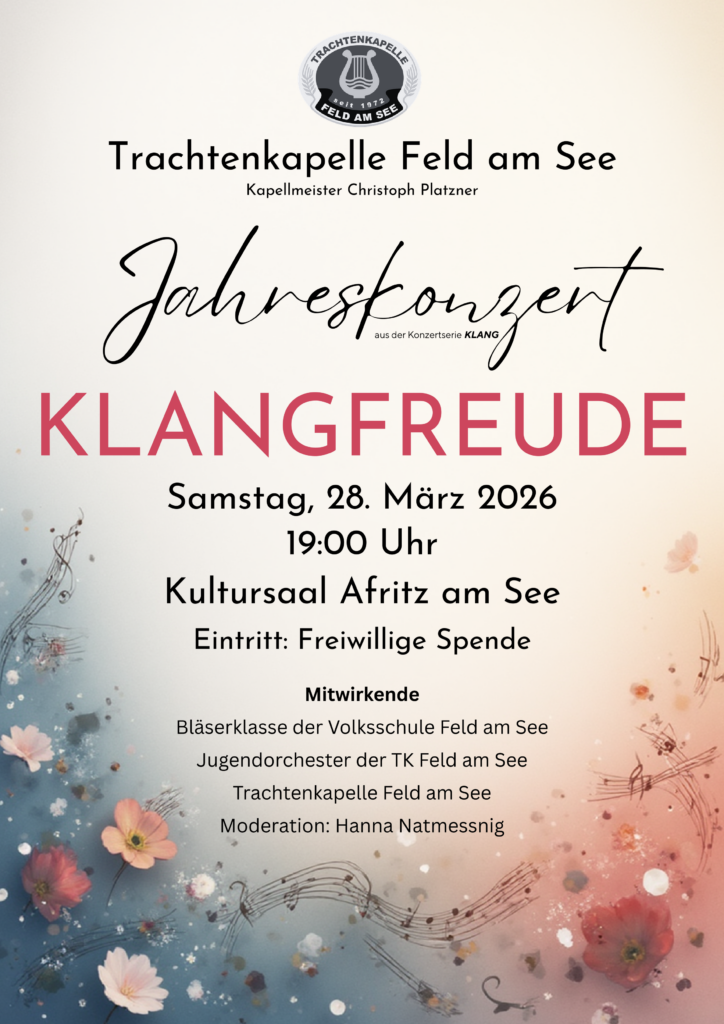 28. März: Jahreskonzert Trachtenkapelle Feld am See